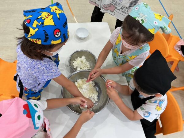 挨拶は、ハイタッチや「Let’s eat」「Thank you」など英語を取り入れ、明るくポジティブな文化を大切にしています。